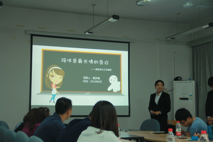 6月28日下午,2016年北京化工大学“十佳宿舍学长”评审会在北校区主教110成功举办。北校区工作办公室副主任许利民老师以及各学院的宿舍学长工作组的辅导员代表出席并担任评委,共15名来自不同学院的15名优秀宿舍学长进行展示和答辩。