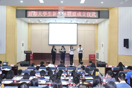10月18日,首都大学生新媒体联盟成立仪式在中国青年政治学院小阶梯教室举行。包括我校学生新闻中心在内的首都高校33家校园媒体代表应邀参加成立仪式。出席仪式的有中国青年政治学院党委副书记张树辉、团中央宣传部新媒体工作处处长吴德祖、北京市教工委宣传处处长王达品、团中央学校部大学处副处长任博远、北京团市委大学部干部范永胜,北京建筑大学党委宣传部副部长孙强、中国青年政治学院团委书记宣飞霞。