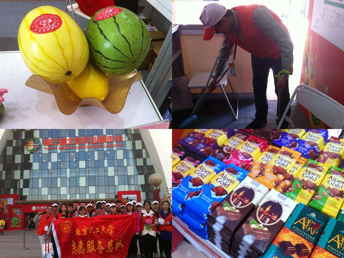 这次,农业精品馆共分配五名志愿者,有两人需要站在门口负责用计数器记人流量,同时为游客指路。另两名志愿者负责在管内巡视,还有一名志愿者与其他工作人员在咨询台为游客解决问题,提供帮助。五名志愿者按时间轮班。早上的温度较低,大家都感觉比较冷,尤其是站在门口的同学,但是大家都以百倍的精神迎接一天的志愿活动。中午十一点左右,游客数量迅速增加,志愿者们都投入到了紧张的工作当中。尽管人数很多,志愿者们认真地回答每位游客的问题,帮他们计划最佳的游览路线。“也许有时志愿工作会有些辛苦,也占用了一些娱乐时间,但是每当被帮助的人对我笑着说谢谢的时候我都感觉非常满足。”一位志愿者朴实的话语透露出了志愿者们的心声,不求回报,不怕辛苦,只为给更多的人提供帮助。