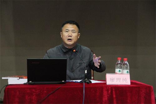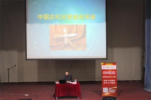 讲座开始,廖理纯先生首先定义了“和”与“庸”两种精神,简要介绍了纵横术和整体意识、国体概念与中华民族的图腾——龙。而后通过我国明清两朝的历史变迁、曾经几乎征服整个欧亚大陆的古雅利安人的兴衰以及我国在朝鲜战场上取得的胜利,证明了“和”与“庸”正是国家和民族强大的核心。此后,又以朝鲜、日本和中东为例,向同学们具体分析说明了当今我国正面临的国际挑战,并指出我国年轻人目前存在的诸多问题,如体力准备不足和精神缺失等。最后,廖理纯先生着重强调了树立正确生死观的重要性,并向同学们提出了“找回先辈精神”、“至少要做到‘庸’的道德水准”两条要求和期望。